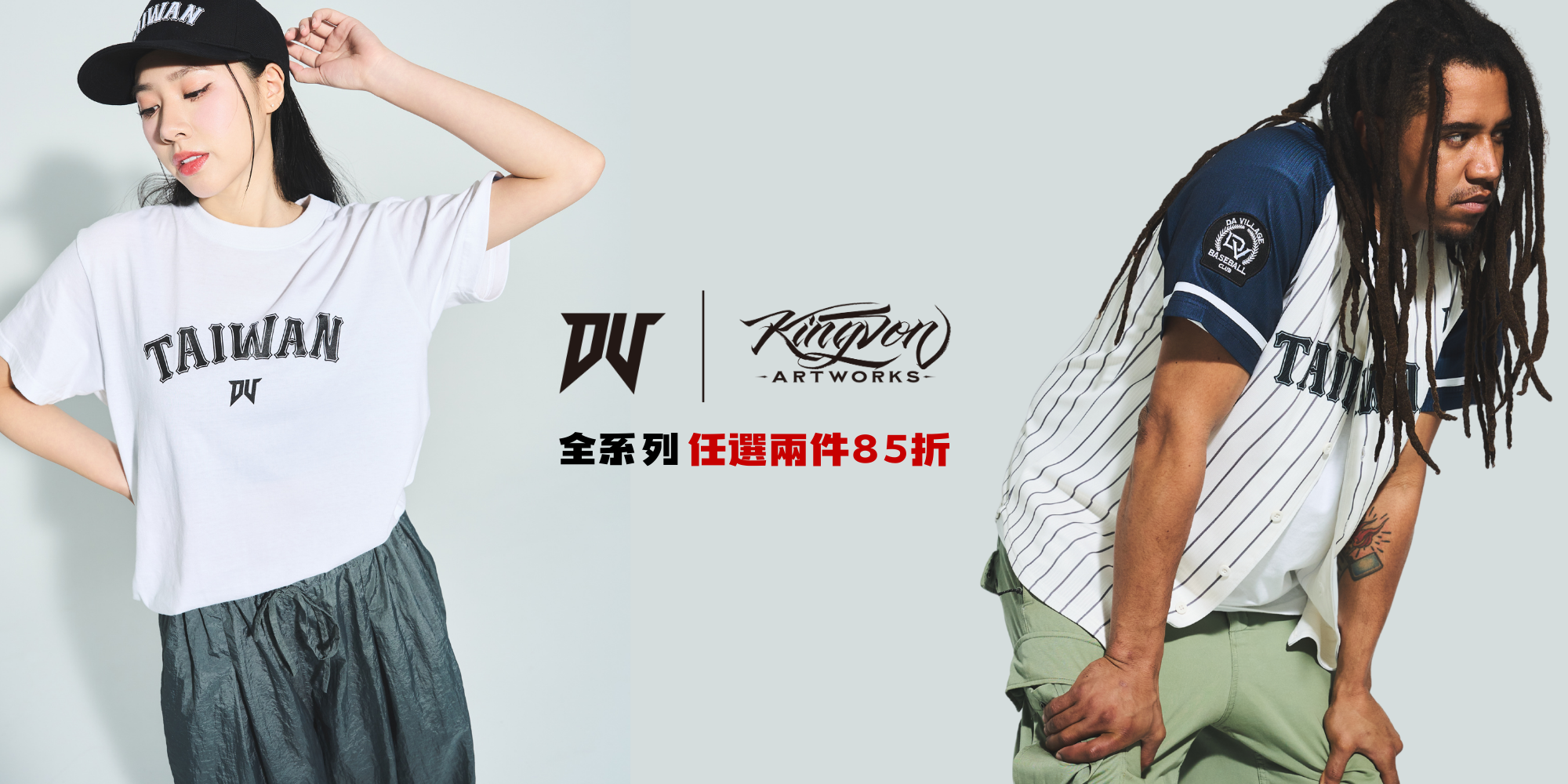 【DV X Kingson Artworks】TAIWAN 系列,將台灣藝術家漢青手繪的「TAIWAN」字體,結合高規格運動剪裁,打造出兼具運動與潮流風格的服飾。從棉質短TEE到草寫老帽,每一件單品都是對台灣精神的致敬。