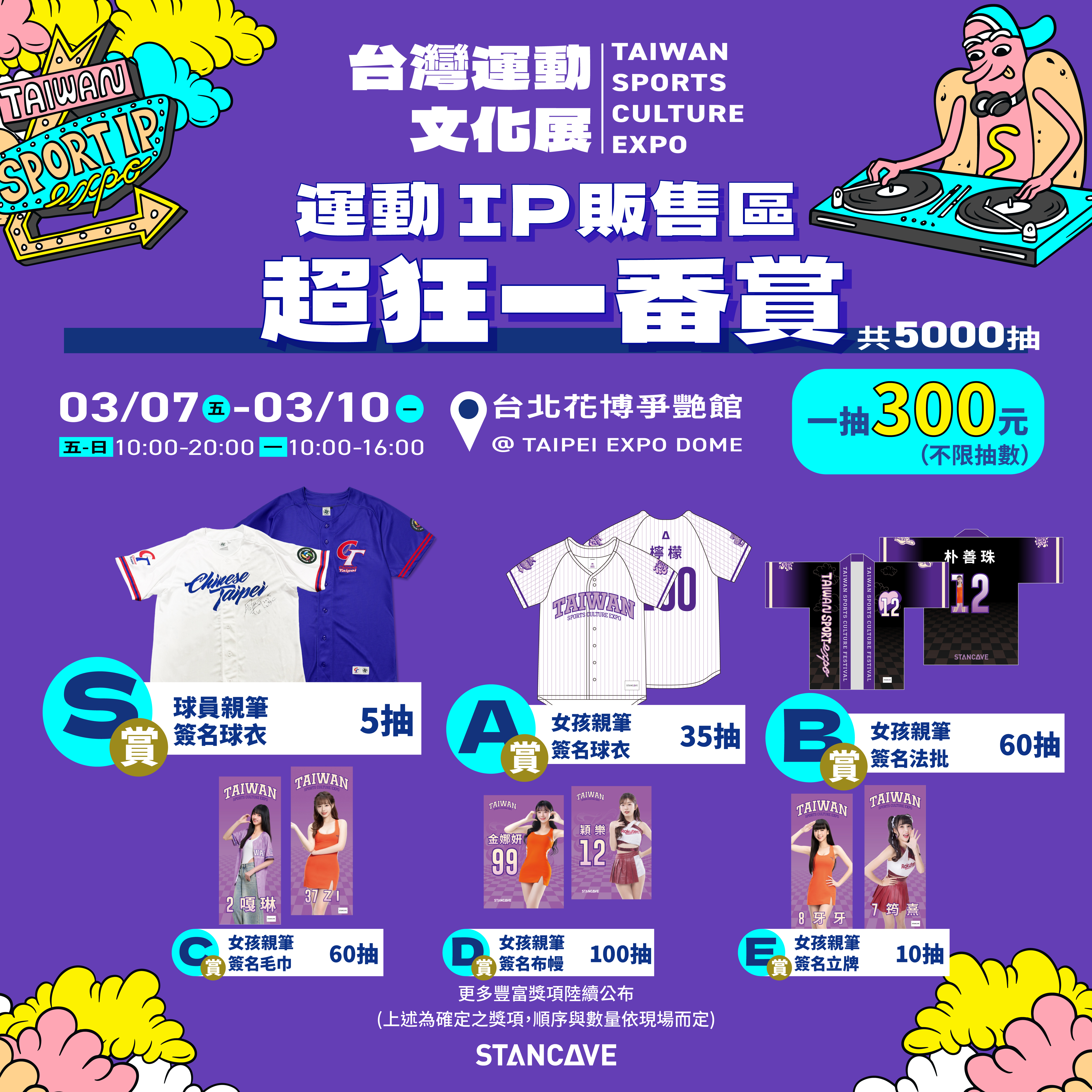 STANCAVE作為台灣目前最大的IP授權周邊商品的電商平台,不論是PREMIER 12 世界十二強棒球錦標賽、WBCQ世界棒球經典賽資格賽、2025雙北世壯運、臺北馬拉松、瓊斯盃國際籃球邀請賽等大型國際賽事的周邊,或者是職棒、職籃球隊的商品,這次在展會也設立了快閃店,一次滿足大家的需求。展會期間更有專屬折扣(部分品項除外),另有一番賞的特別活動,歡迎大家前往試試手氣。