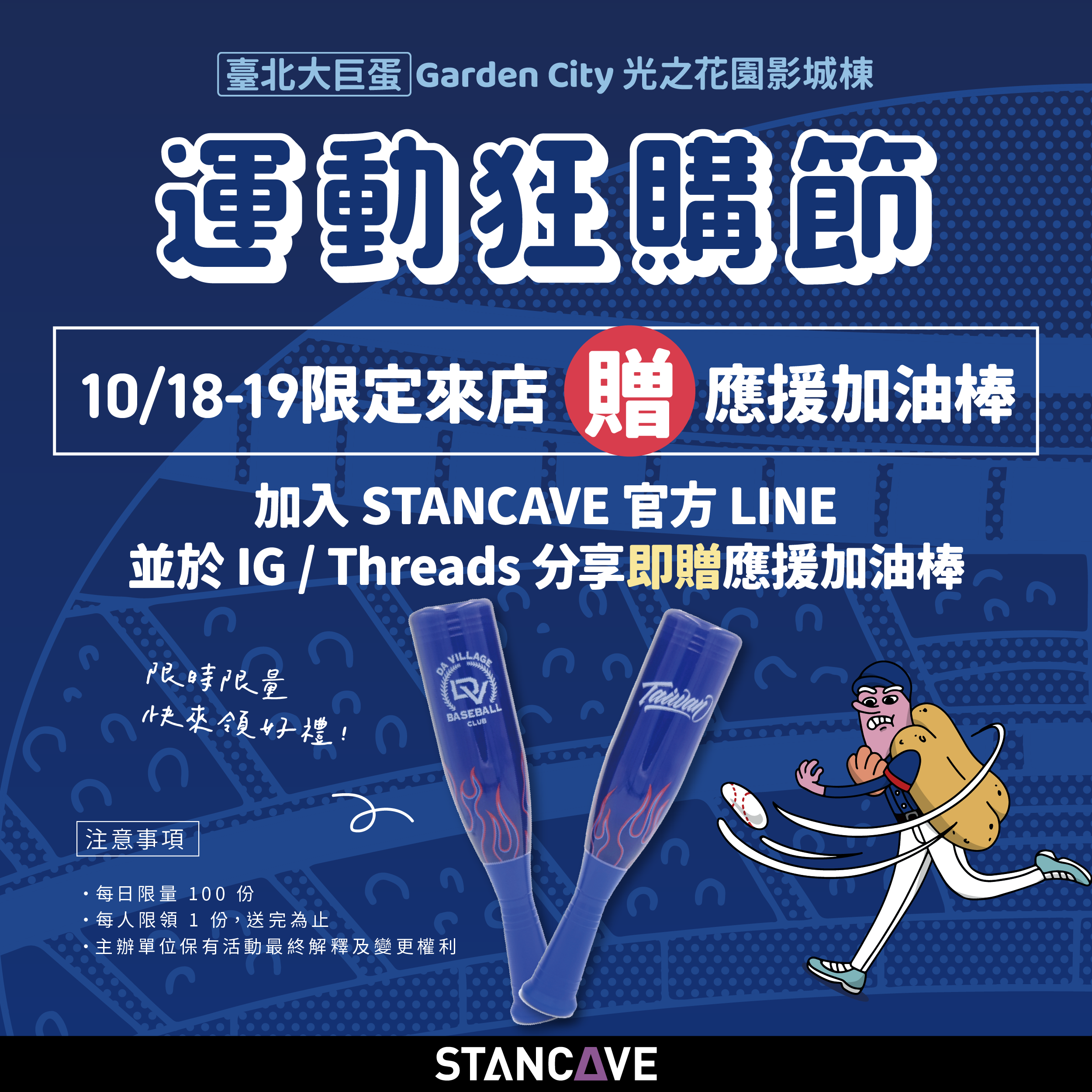 10/18–10/19 13:00–15:00 加入 STANCAVE 官方 LINE 並於 IG/Threads 分享,即可免費獲得「應援加油棒」乙個!
