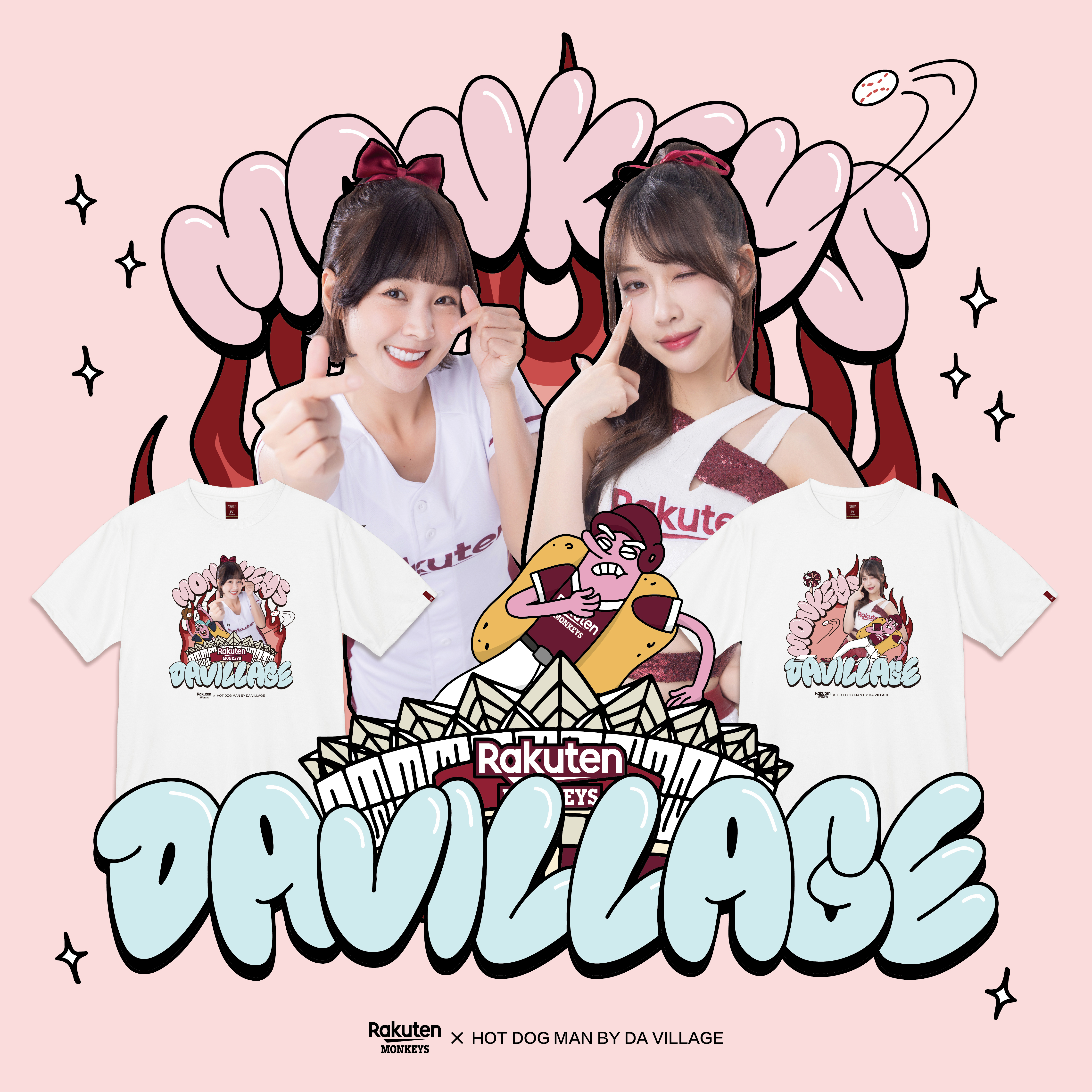 HOT DOG MAN年度聯名來啦!此次熱狗人與 12位樂天女孩共同演繹,熱血的熱狗人與美式漢堡大叔,一起與可愛的樂天女孩們創造出充滿熱情的運動文創插畫,送給喜歡女孩的球迷們,在賽季末時一起記憶本季在球場的美好時光哦!