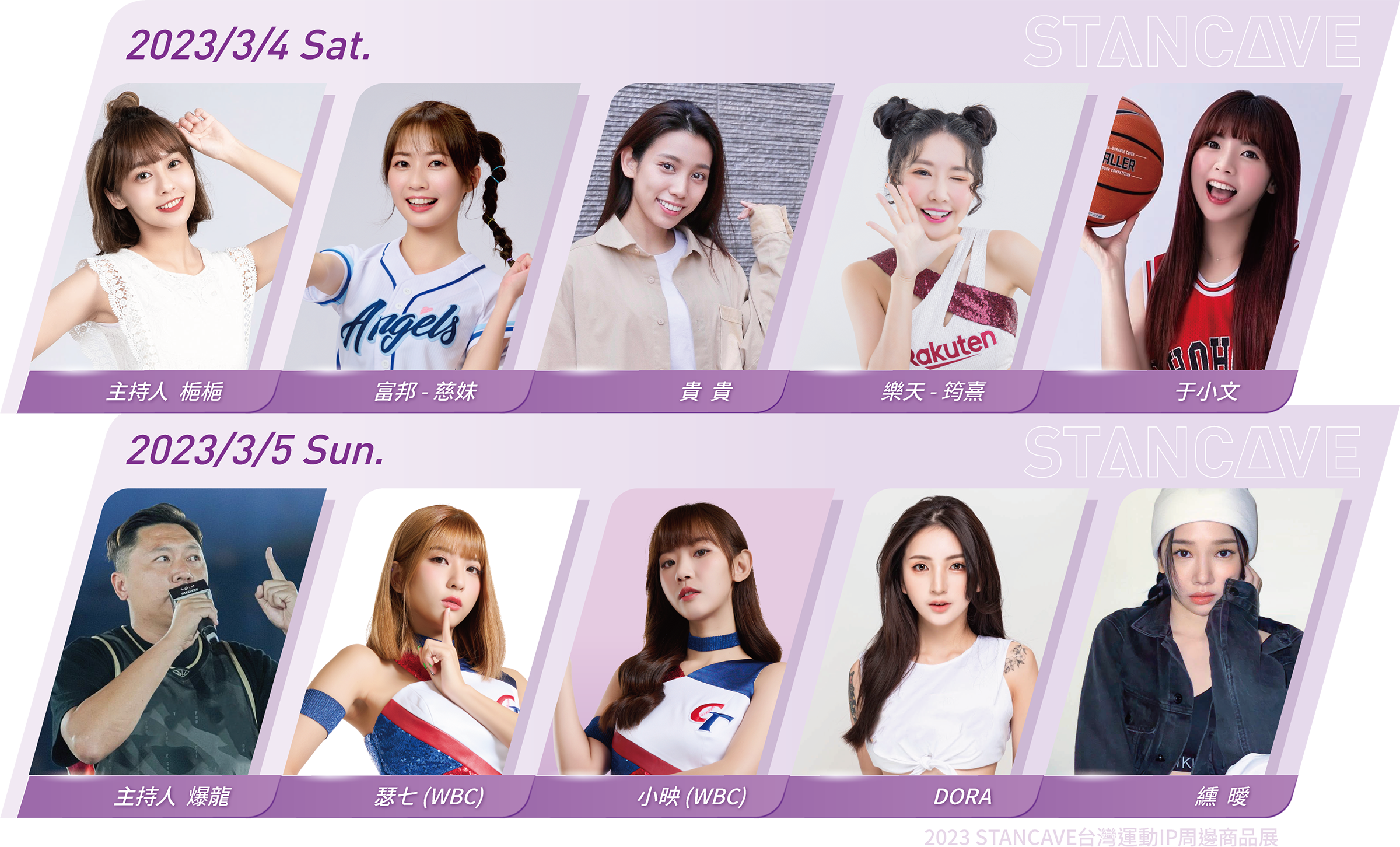 而在最為精華的展會週末(3月4日、3月5日)也規劃近十場的一日店長活動,將由知名主持人梔梔、爆龍,搭配眾多時下極具人氣與粉絲號召力的啦啦隊女神們:慈妹、貴貴、筠熹、于小文、瑟七、小映、Dora、纁曖,帶領所有球迷從運動賽事走向日常生活,邀請大家一起為自己喜愛的球隊、球星以及中華代表隊傳遞心中的熱情。