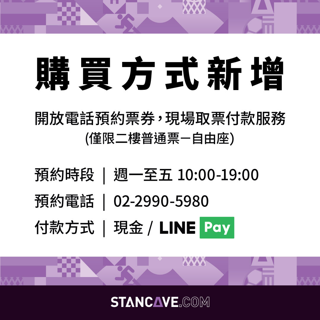 如果錯過線上購票時間,也可於當日12:00新莊體育館現場以「現金 / LINE PAY」購票哦!