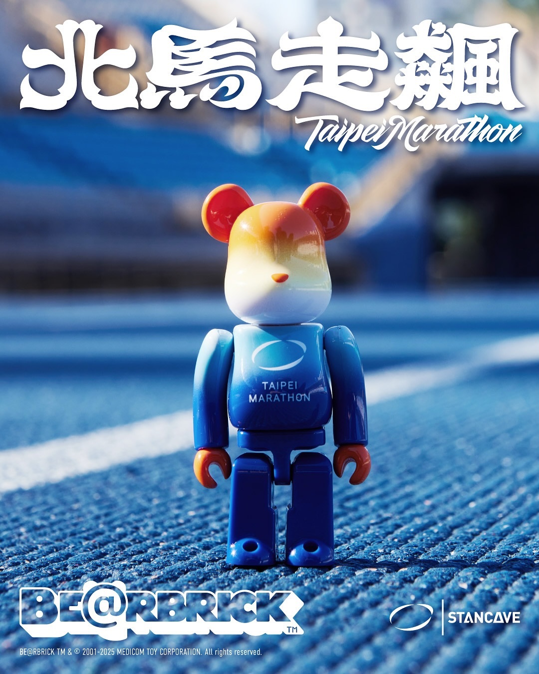 今年更特別攜手日本指標性潮流玩具品牌 MEDICOM TOY,聯名推出 2025 臺北馬拉松 BE@RBRICK 100% 限量紀念公仔,將潮流設計與運動精神完美融合,為賽事注入嶄新視覺能量。
