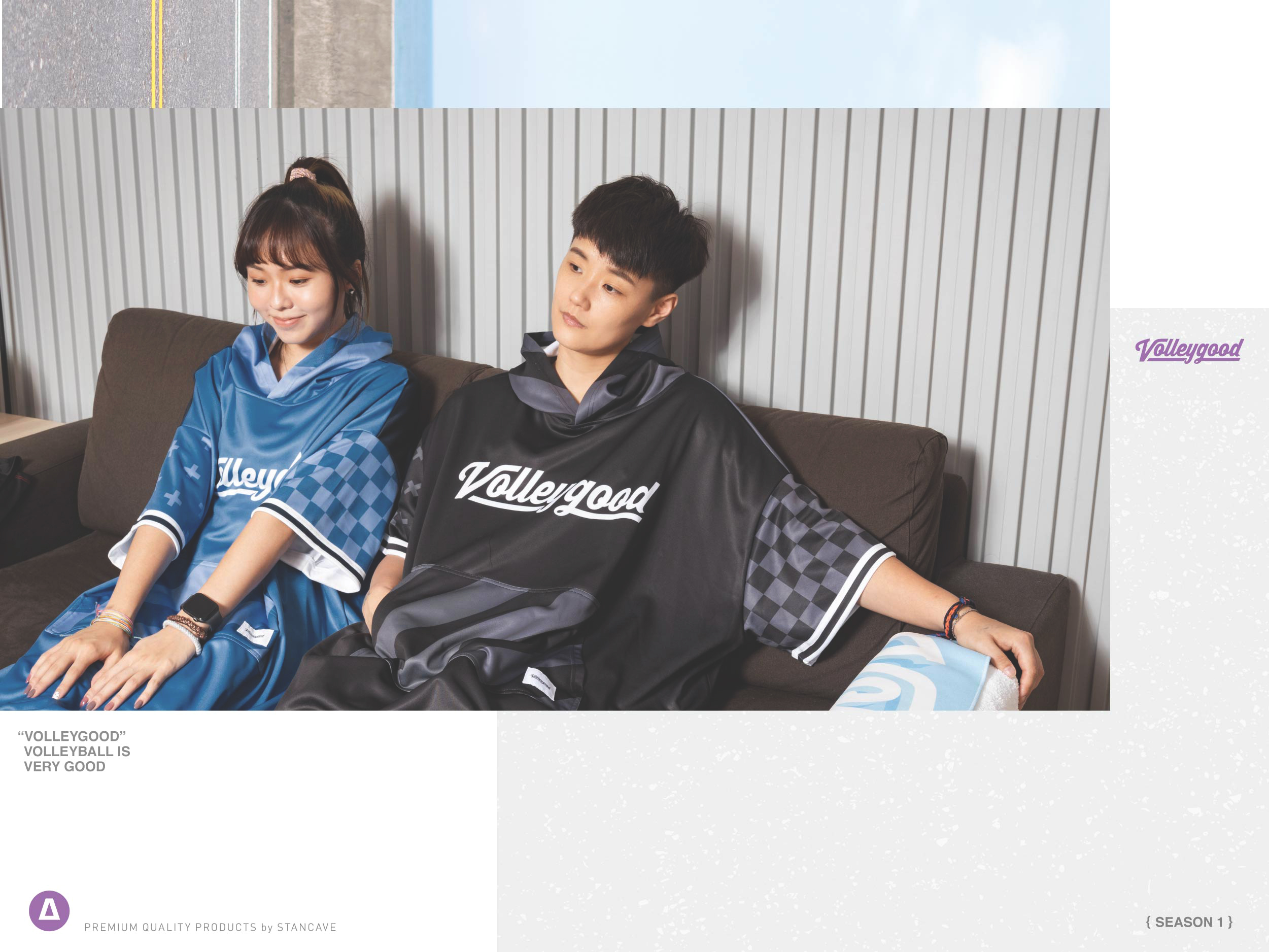 Urban Outdoor無論是在都市或是在郊外活動都能穿搭出簡單率性的樣貌,同時也是小牛、苡任非常喜歡的服飾風格,整體服飾偏向中性與寬鬆版型的設計。小牛、苡任在形象拍攝中,更以戶外休閒的隨興搭配與縱橫穿梭於城市間的意象,傳達出VolleyGood的品牌態度,兼顧排球文化與潮流內涵的獨特服飾。