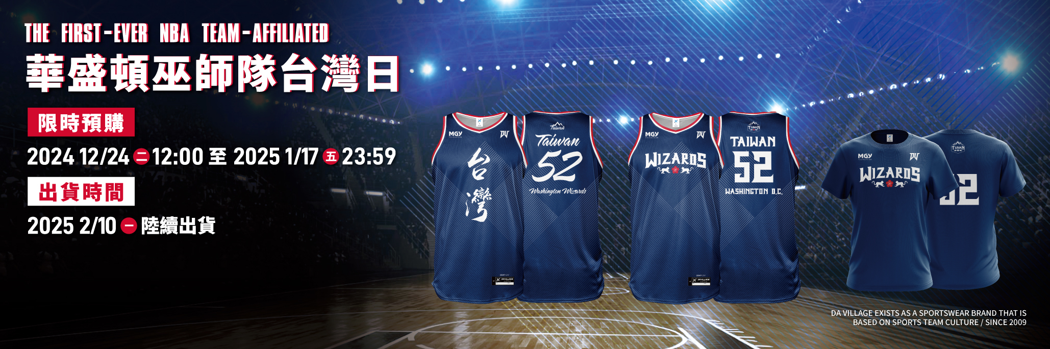 為紀念這歷史性的一刻,由"臺頑千禧青少年基金會(MGY基金會)" 攜手 "NBA華盛頓巫師隊" 與台灣運動品牌 "迪威運動DA VILLAGE "(DV),傾力打造專屬聯名紀念款──「52台灣」限量版球衣 & 短TEE。DA VILLAGE(DV)作為台灣在地16年的品牌,很榮幸有機會參與NBA首次的台灣主題日合作,能有此機會向全球傳遞文化與籃球精神,深感榮幸。透過這件球衣,我們希望帶領每位球迷一起感受籃球的激情與台灣的獨特魅力。