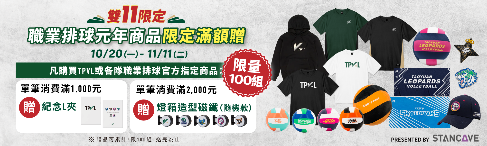 ・單筆消費滿 NT$1,000|贈【TPVL 熱身賽】紀念 L 夾乙份